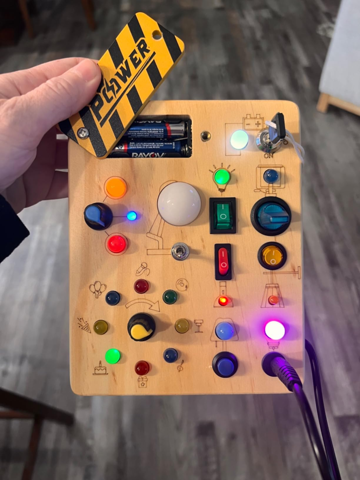 With real switches, buttons, and clicks, this hands-on board keeps little minds and fingers busy for more than just a moment. Inspired by Montessori learning, it helps your child build real-world skills like coordination, independence, and problem-solving — all while they play.